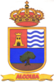 Medio partido y cortado: 1º de gules, una torre de oro, aclarada de azu; 2º de plata, cuatro ondas de azul; 3º de azul, un olivo al natural, terrasado de lo mismo. Al timbre Corona Real cerrada.